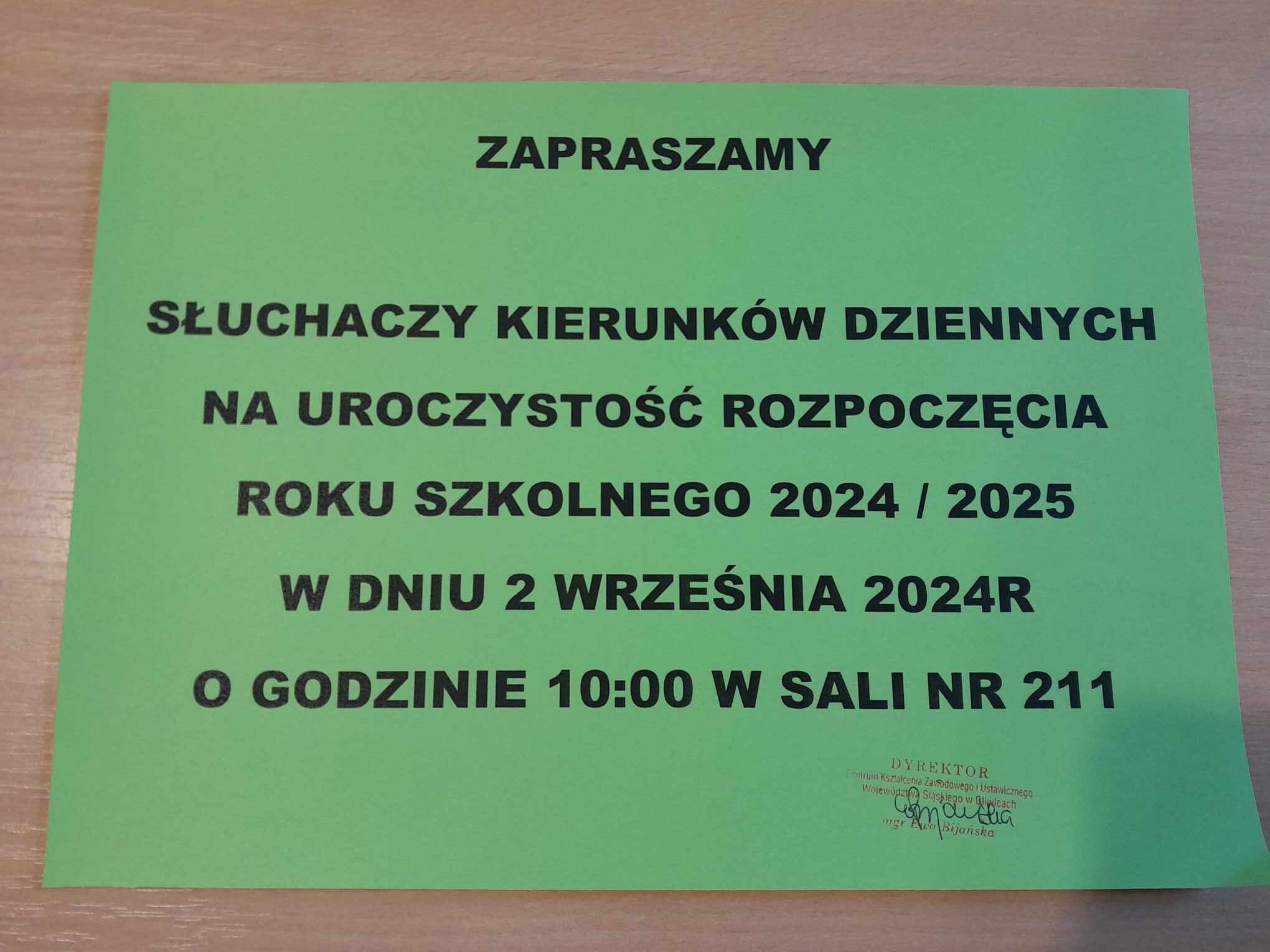 W dniu 02 września br. rozpoczęliśmy nowy rok szkolny 2024/2025.Życzę Państwu aby był on dla każdego pełen nowych możliwości, sukcesów i satysfakcji. Słuchaczom, życzę by czas spędzony w szkole zaowocował